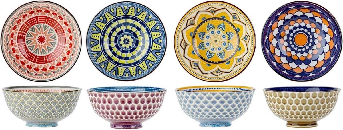 Breng je tafelblad tot leven en verbaas je gasten met deze prachtige kommen. Deze set bestaat uit 4 stijlvolle kommen met een diameter van 12 cm. Gebruik ze voor het serveren van tapas, rijst of heerlijke desserts.